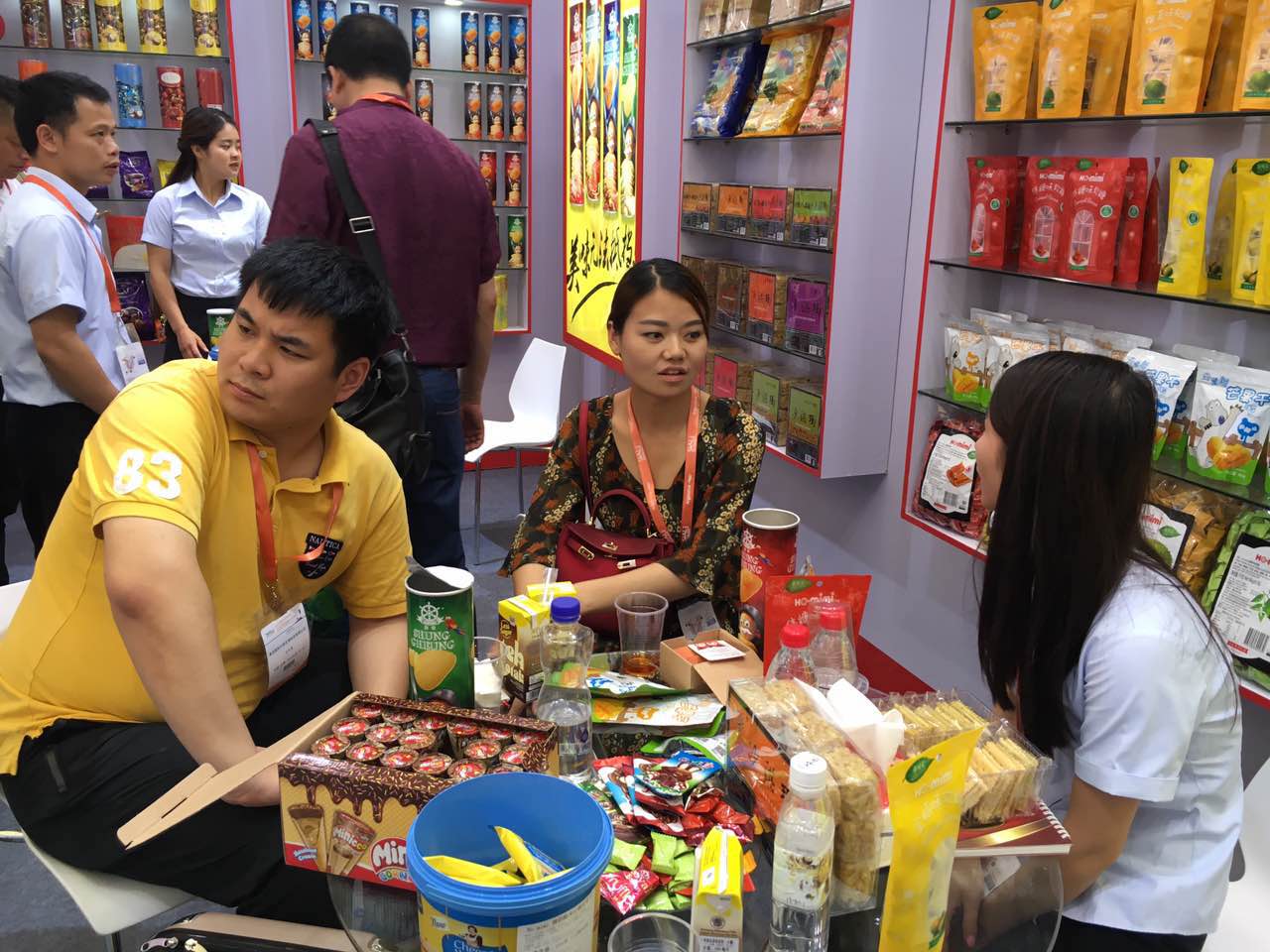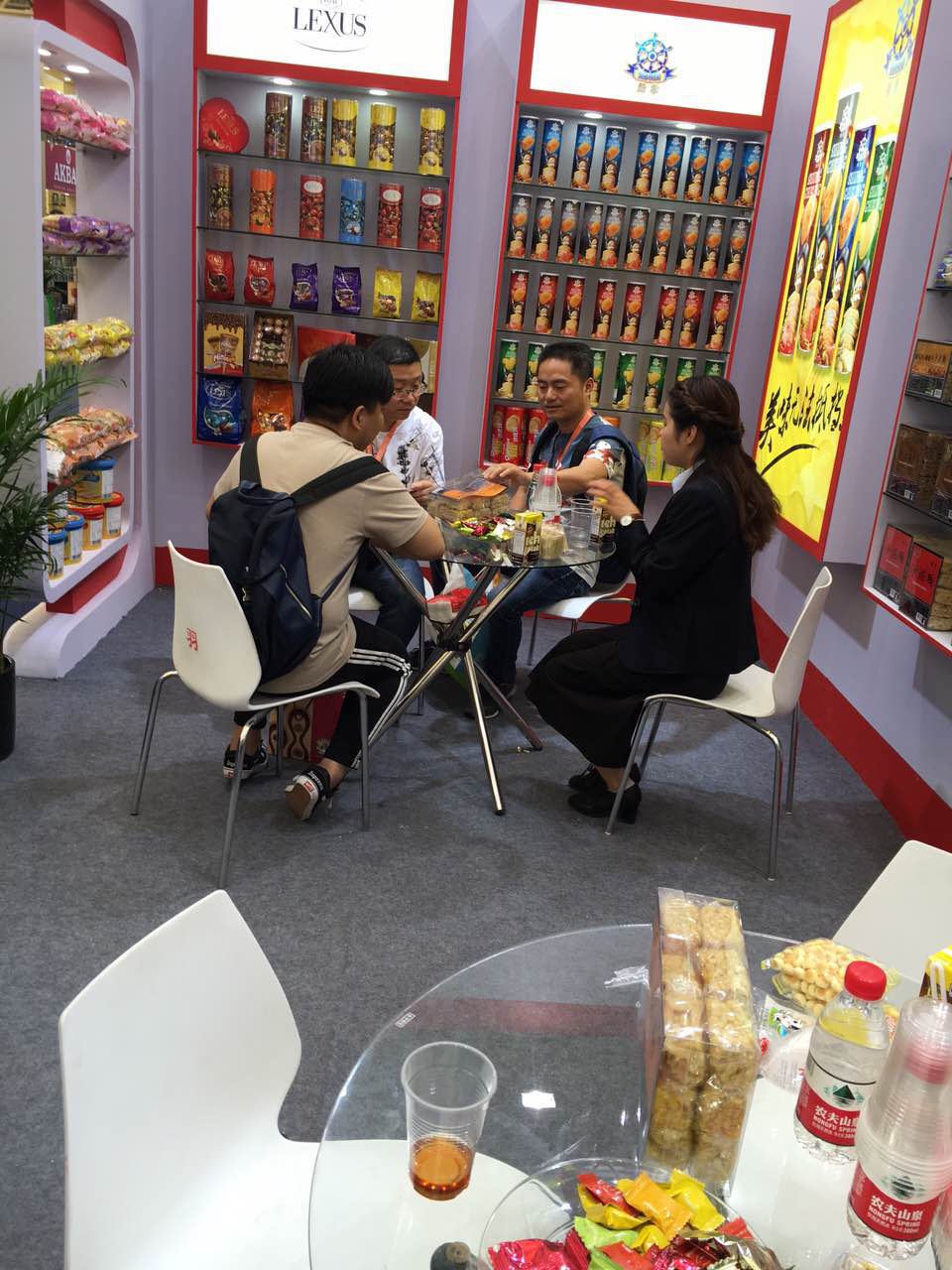 展會第一天,一德路最大批發(fā)商謝總,張總、胖東來、7-11采購等新老朋友都來到了展位參觀、洽談。